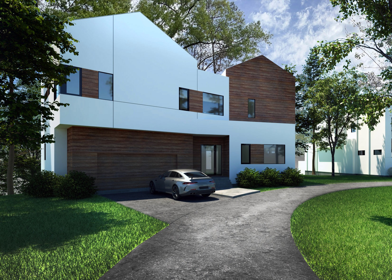 The use of mixed materials, including wood accents and white panels, adds warmth and contrast to the otherwise crisp and geometric exteriors. Thoughtfully designed landscaping complements the homes’ aesthetic, blending modernity with the tranquility of the lush Memorial area.